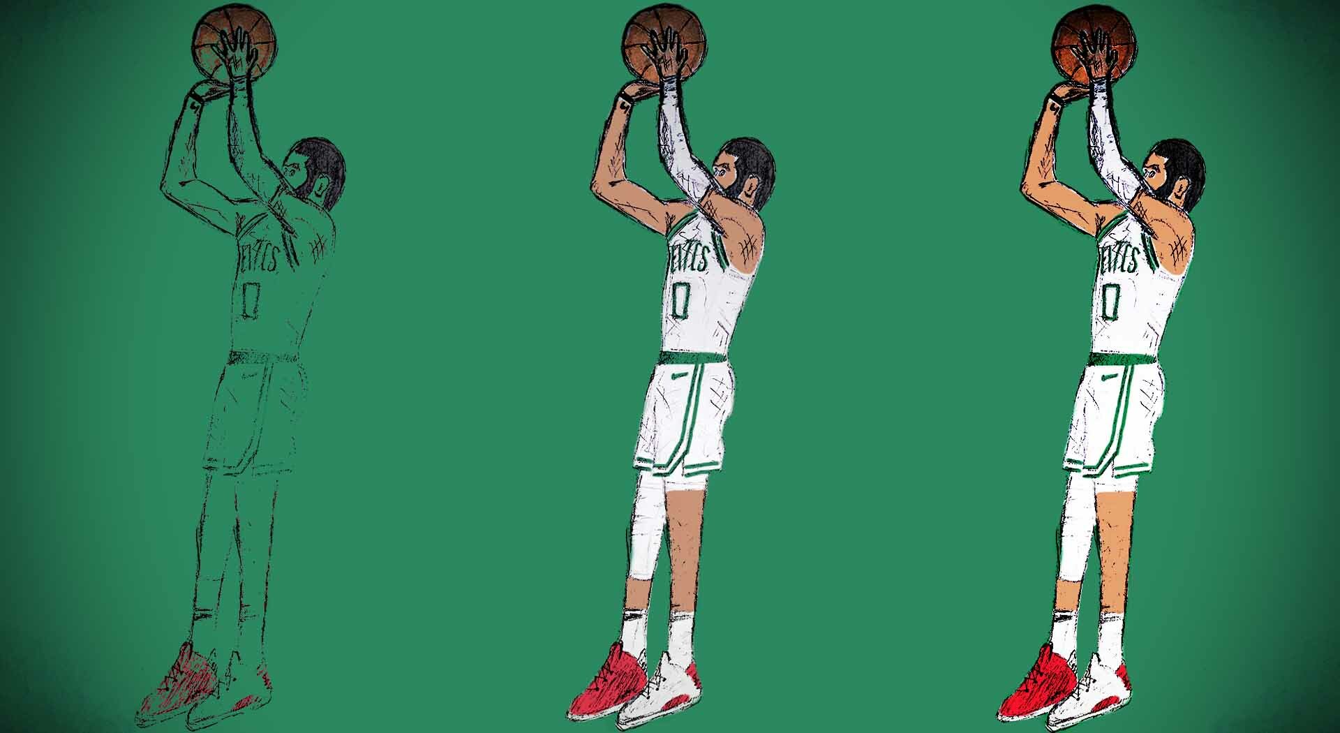 Tatum kreiert bei weitem nicht so viel Platz wie die anderen Pull-Up-Künstler, kann sich aufgrund seiner kompakten Bewegungsabläufe und hohem Release mit bedeutend weniger Raum zufrieden geben. Seine Körperkontrolle erlaubt es ihm, den Sidestep in beide Richtungen nutzen zu können und trotzdem in guter Wurfposition zu bleiben.