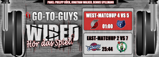Go-to-Guys Wired beschäftigt sich in der 56. Ausgabe mit der ersten Runde der Playoffs. Philipp Rück, Dennis Spillmann und Jonathan Walker besprechen im Podcast ihre Ansicht zu den Playoff-Matchups “Memphis Grizzlies vs. Portland Trail Blazers” und “Cleveland Cavaliers vs. Boston Celtics”.