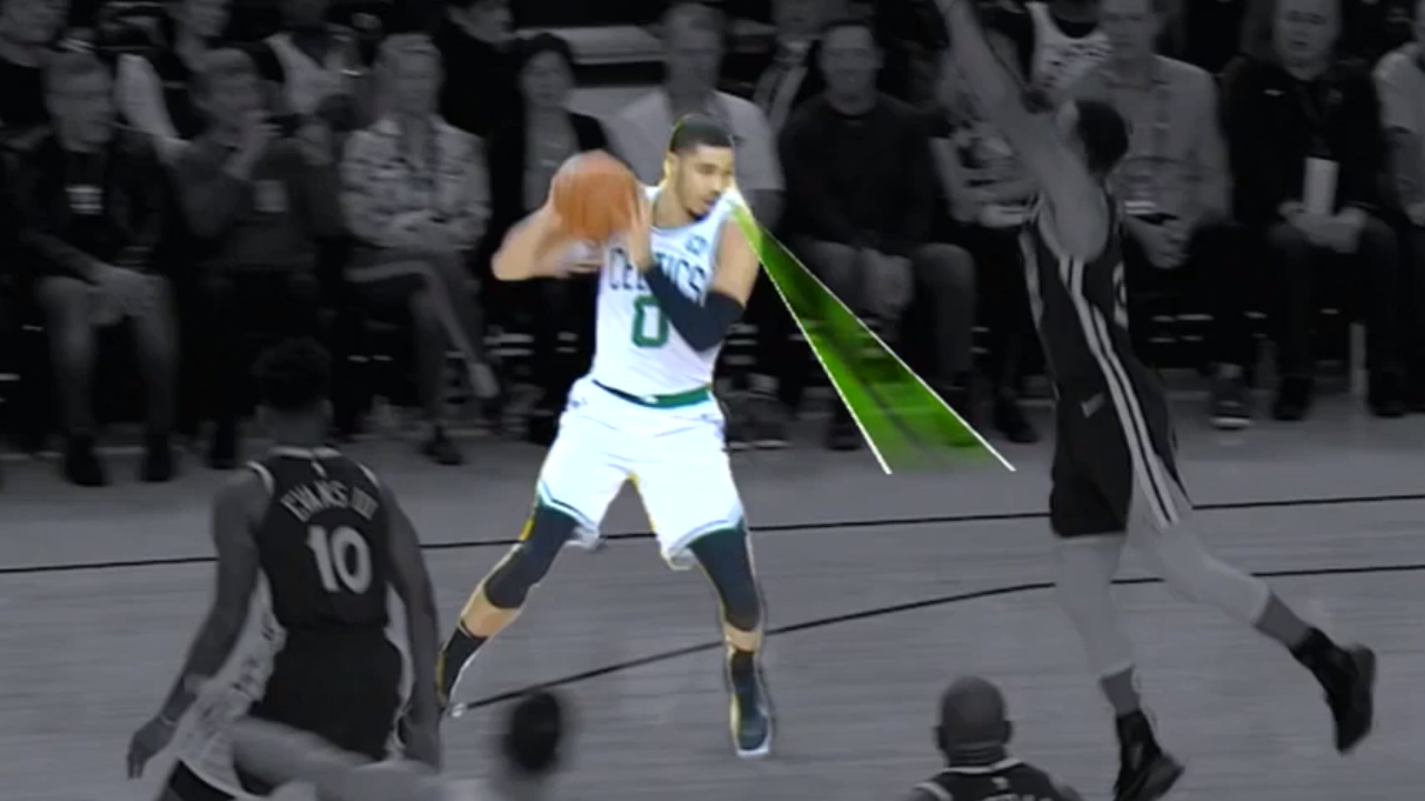 Seine Creation für andere im Halbfeld ist allerdings nach wie vor begrenzt, auch wenn er in der Transition gelegentlich gutes Passverständnis aufblitzen lässt. Im egalitären System der Celtics ist er deswegen gut aufgehoben und kann die Playmaking-Verantwortung getrost Irving und Horford überlassen. Dafür ist Tatum recht vielseitig was das eigene Scoring angeht. Die meisten Abschlüsse nimmt er aus Spotup-Gelegenheiten (17,5% seiner Würfe), allerdings ist er auch als Pick n Roll Ballhandler eine unterschätzte Gefahr (15% seiner Würfe / er ist dabei effizienter als 73% der Liga). Er ist gut darin Mismatches zu attackieren und kann diese dank seiner guten Länge auch aufposten. Off-Ball bewegt er sich ebenfalls sehr gut und die Celtics Offense profitiert von seiner hohen Aktivität in Form von Cuts oder Off-Ball Screens. Nur in der Isolation hat er sich bisher schwer getan in diesem Jahr und gehört bei einem recht beachtlichen Volumen (13,5% seiner Würfe) zu den schlechtesten 20% der Liga. Gerade in diesen Situationen tendiert er zu Mitteldistanzwürfen und bevorzugt eher den Jumper als den Drive zum Korb.