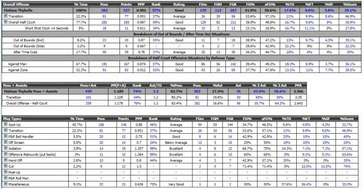 * Als Sophomore musste der Wing auch als Mann-Verteidiger agieren und lieferte gute Werte. Er überzeugte vor allem als Isolation-Defender. Außerdem verteidigte er in diesem Jahr zumeist den gegnerischen primären Ballhandler, was bei seiner Kombination aus Tools und Fertigkeiten nicht weiter verwundert. Eine Eins-zu-Eins-Übertragung kann natürlich nicht stattfinden. Der Fakt gibt aber einen Hinweis darauf, dass Thybulle auch ohne Zone in der NBA ein starker Verteidiger sein sollte.