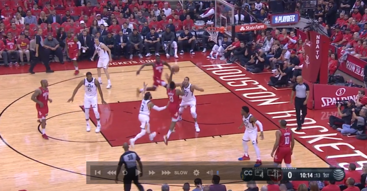 Das Resultat war jedoch einfach, dass Harden freie Passwinkel in die Ecken hatte. Generell verpassten die Jazz-Spieler des Öfteren die eigentlich passende Rotation. Die Rockets trafen als Team 15/41 Dreiern (36,6 %) und nahmen 14 Eckendreier, von denen sie 5 verwandelten – deutlich mehr als ihr Saisonschnitt von 11,4 Eckendreiern/Spiel. Dabei gehören die Jazz eigentlich zu den besten Teams der Liga, wenn es darum geht, solche Würfe zu verhindern.