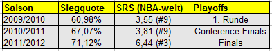 Angefangen hat es für Scott Brooks im Jahre 2008, in der ersten Saison der Thunder in Oklahoma City. Das junge Team um Sophomore Kevin Durant und Rookie Russell Westbrook startete unter Coach P.J. Carlesimo mit 1-12 grausam in die Saison und Sam Presti beschloss, dass ein Wechsel auf der Trainerposition dringend erforderlich war. Also wurde Carlesimo entlassen und der Assistenttrainer Scott Brooks wurde zum Cheftrainer befördert. Was zunächst allenfalls als Interimslösung geplant war, entwickelte sich schnell zu einer echten Erfolgsstory. Die Thunder schafften trotz zwischenzeitlichem 3:29 eine 23:59 Bilanz, gewannen also 20 der letzten 50 Spiele. In der Folgesaison gelang der überraschende Playoffeinzug mit 50 Siegen, Scott Brooks wurde Coach des Jahres und die Thunder lieferten dem späteren Champion Los Angeles Lakers einen echten Kampf (2:4). Das Jahr darauf wurden 55 Spiele gewonnen, in den Playoffs war erst gegen den späteren Champion aus Dallas Schluss. Nach dem großen Lockout und der dann folgenden verkürzten Saison zogen die Thunder sogar in die Finals ein, fanden dort gegen den König aus Miami aber kein Mittel und mussten sich mit Anerkennung für die Leistungen des jungen Teams und Verweisungen auf eine angeblich goldene Zukunft zufrieden geben.