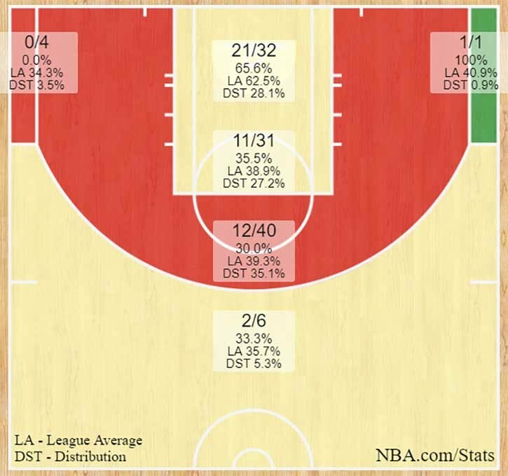 Schwachpunkte sind bisher – wie zu sehen – der fehlende Distanzwurf und die Probleme, mit Kontakt abzuschließen bzw. das Foul zu ziehen. Auch den Court überblickt Fox noch nicht immer vollständig und trifft überhastete Entscheidungen.